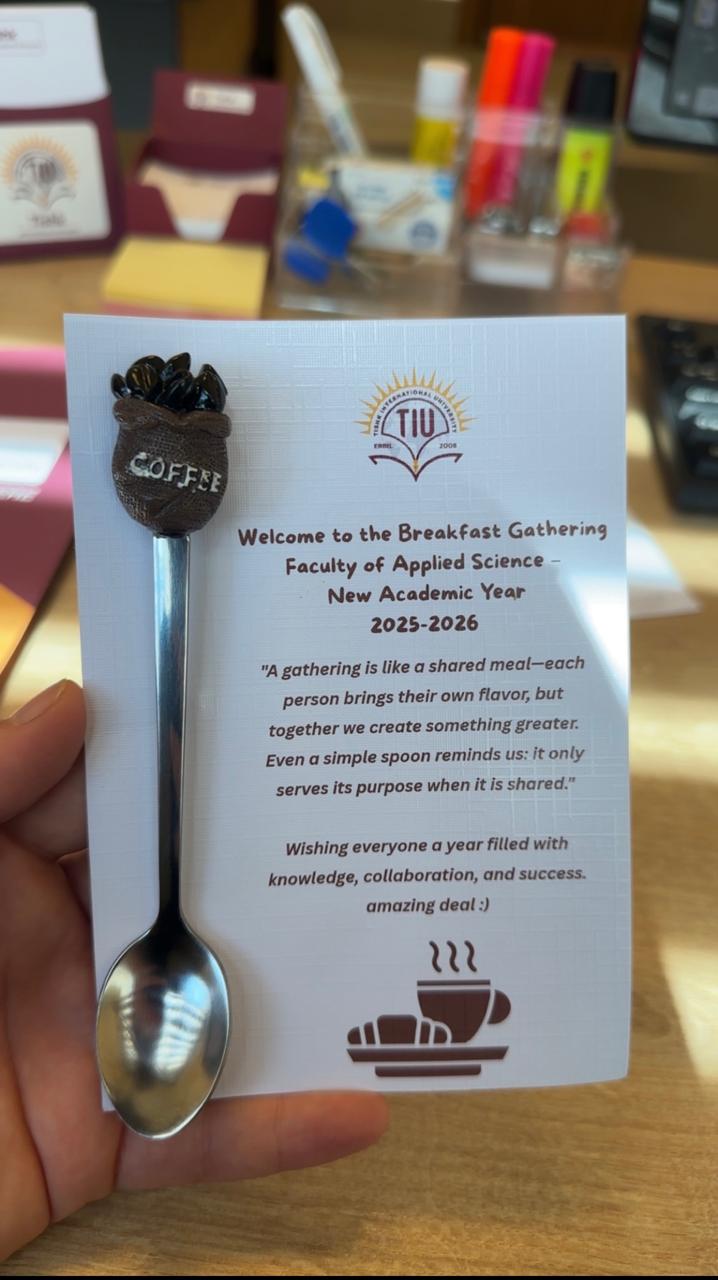 On September 23rd, 2025, the Faculty of Applied Science at Tishk International University, in collaboration with the Dean of Students Office, organized a Welcoming Back Breakfast to commemorate the start of the new academic year. The event provided faculty members with a valuable opportunity to reconnect, share experiences, and begin the academic term with renewed enthusiasm and positive energy.