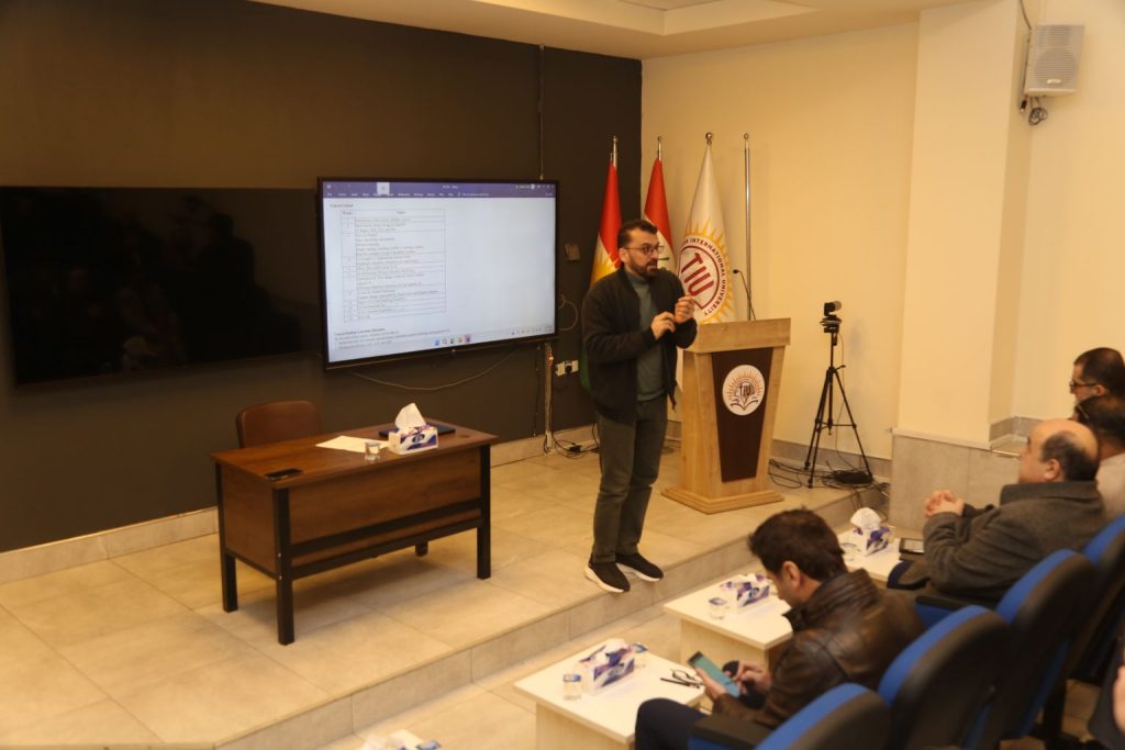 During the session, Dr. Hemin Ibrahim, Head of the Artificial Intelligence Department, took the floor to present the comprehensive syllabus and operational framework for the new course. Dr. Hemin provided a detailed walkthrough of the learning outcomes, emphasizing a practical approach to modern technology.