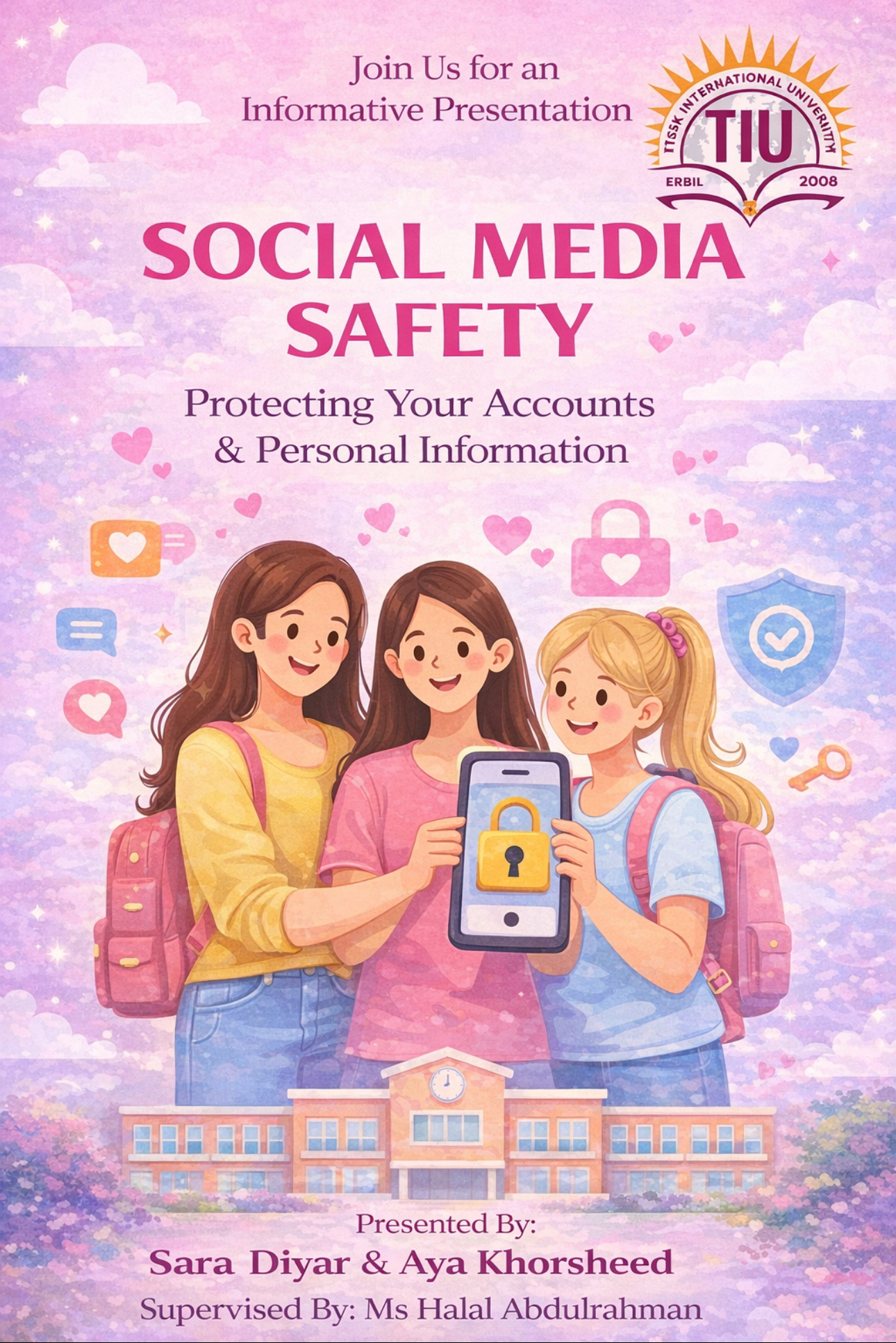 Sivan Haji2026-02-22T14:44:16+03:00On the 17th of the 2nd semester, 2026 in Tishk International University (TIU), an informative talk was given to students of the 2nd-stage of the Cybersecurity course by Alan Farhan Khalid, Raha Aram Hussen, Mohammed Ahmed Qadir, and Balen Peshawar Faruq on the topic of Cyberbullying. The event was arranged to be a part of the scholarly and community involvement efforts at the department, the goal of which was to create awareness of safe internet practices and severe consequences of cyberbullying among schoolchildren. In the presentation, the students gave a clear definition of cyberbullying, its prevalent types in the social [...]