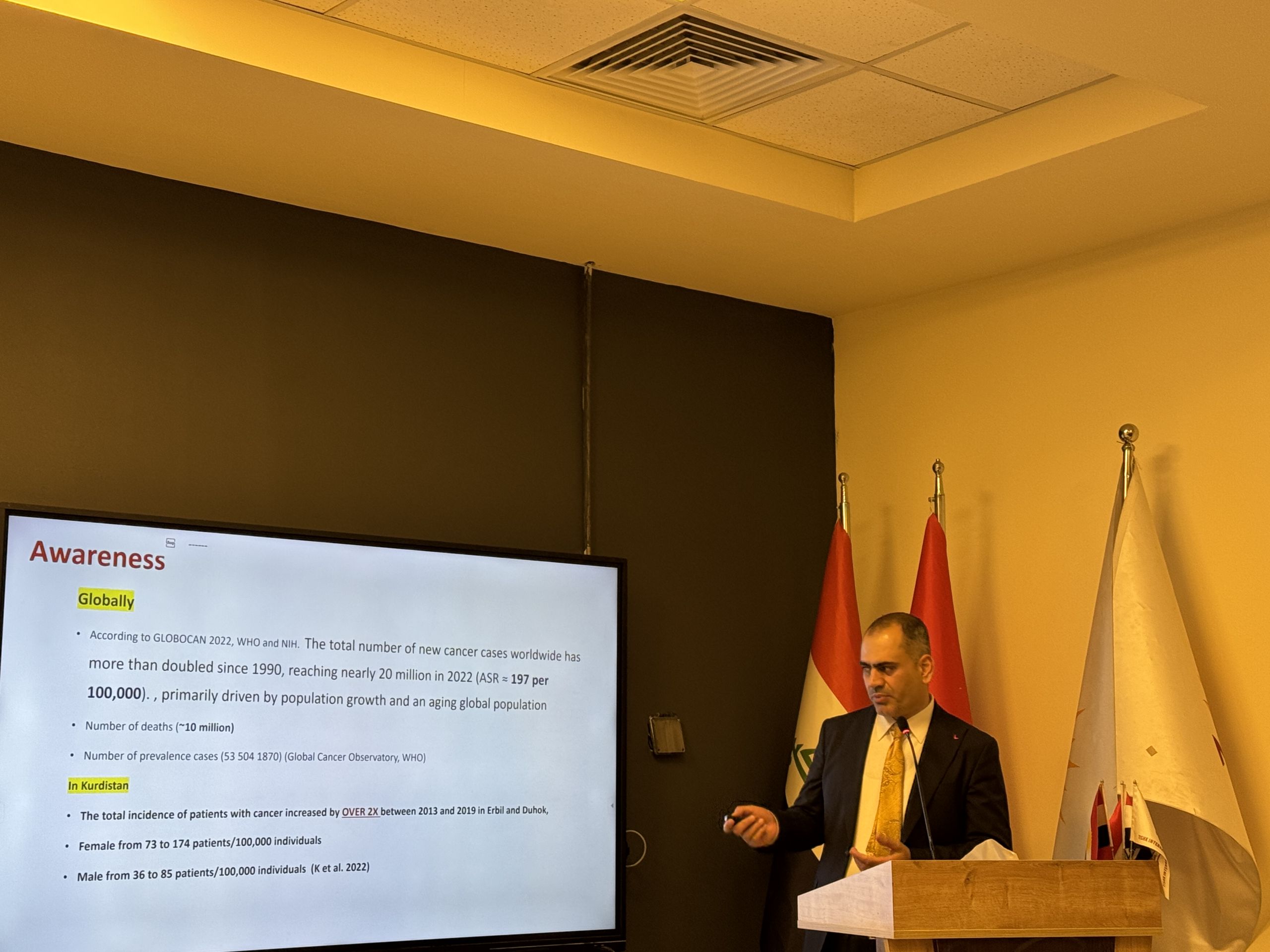 Dr. Peshraw presented an informative lecture covering the hallmarks of cancer, major types of cancer, mechanisms of cancer development and spread, and an introductory overview of cancer biology. The seminar aimed to enhance students’ understanding of cancer pathology and raise awareness about its global impact.